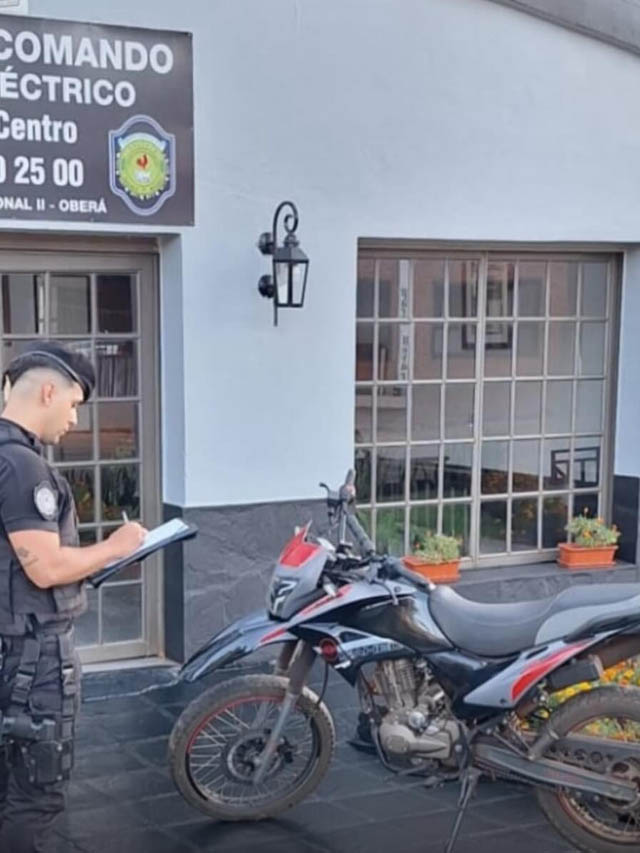 AGENCIA MISIONES.UNO | Efectivos del Comando Centro de la Policía de Misiones recuperaron una motocicleta que había sido sustraída en la ciudad de Oberá, luego de un amplio operativo de búsqueda realizado en distintos puntos de la zona urbana.